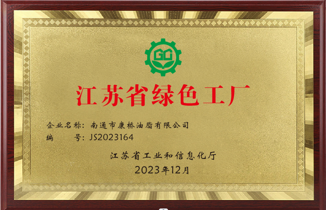 康橋油脂榮獲“江蘇省綠色工廠(chǎng)”榮譽(yù)稱(chēng)號